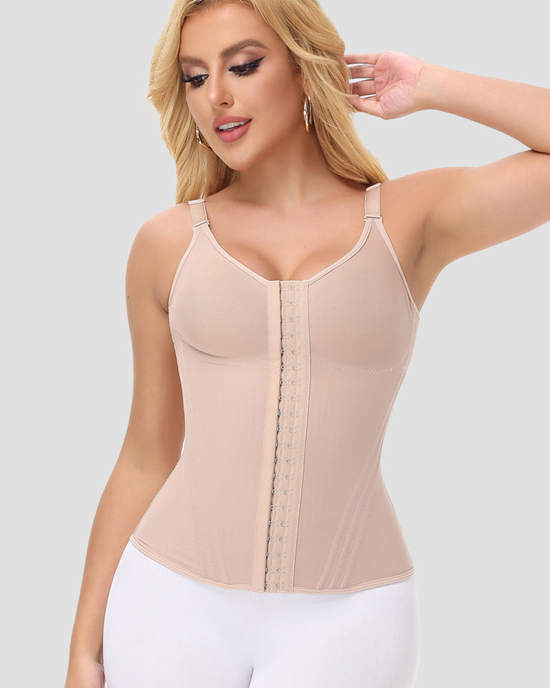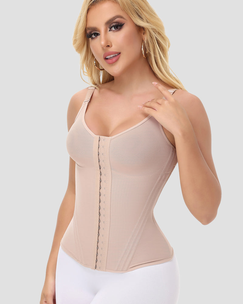 Vest design can not only shape the waist, support the chest and accept the accessory breast, but also lift the back, which has a significant effect on improving the hunchback and correcting the posture. And lower hem arc design can hold abdomen cellulite. Wide shoulder strap design is comfortable and will not tight the shoulder.