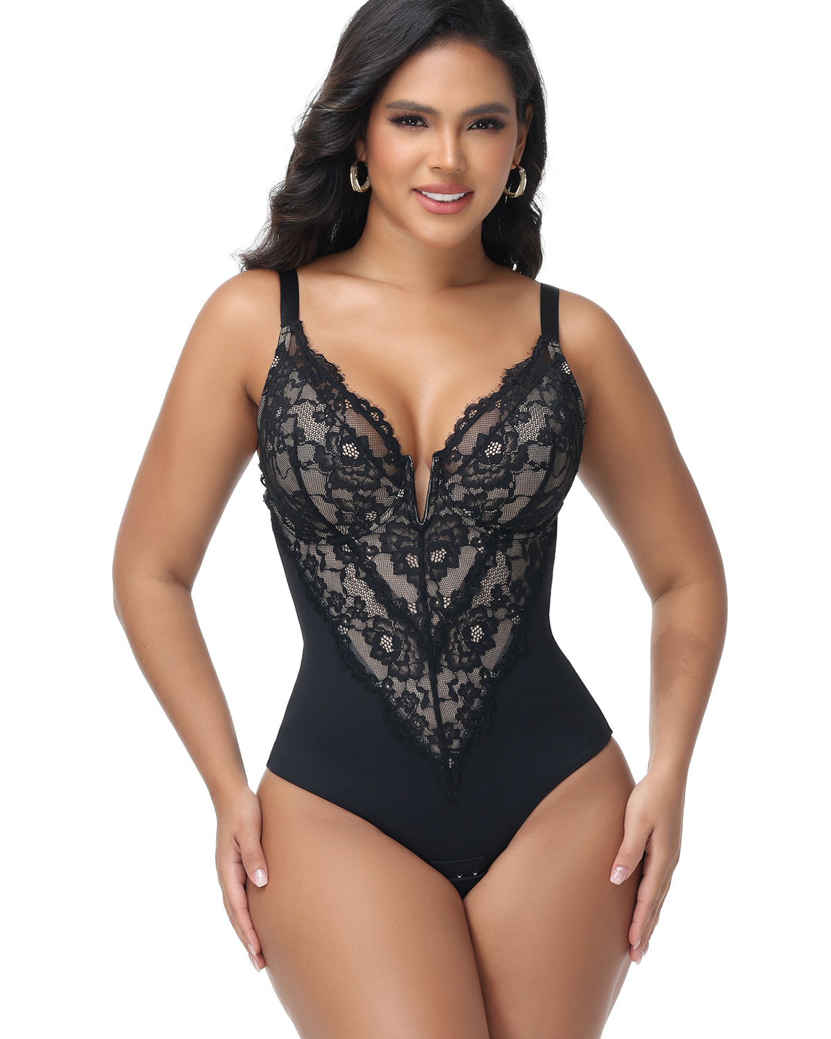 This bodysuit features a deep V-neck design, showing off the charming clavicle and neck curves, increasing visual appeal; lace decoration. Adding feminine softness and delicacy, making you more charming!