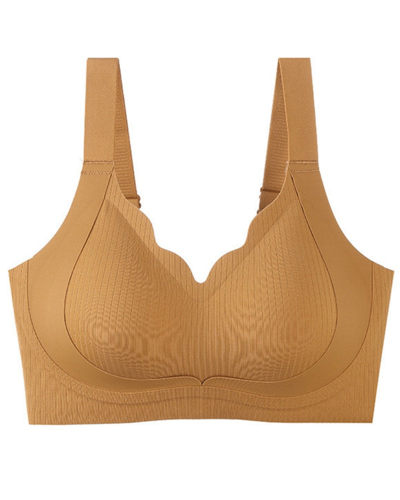 This seamless bra is designed to enhance your natural curves with its comfortable push-up padding, providing a flattering lift without compromising on comfort. The deep V neckline adds a touch of allure, making it the ideal choice for both casual and special occasions. Crafted from soft, stretchy materials, this bra ensures a snug fit that moves with you, allowing for all-day wear without irritation.