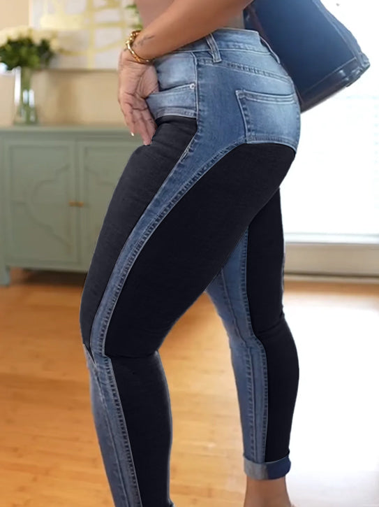This pair of jens features a unique contrasting color stitching design, which is fashionable and avant-garde, showing individual charm; it lifts the hips and slims the body, shaping perfect curves, showing a slim figure, increasing your confidence, and making you look charming!
